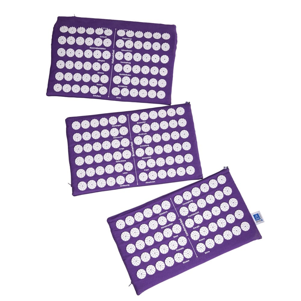 Deze driedelige acupressuurmat is ideaal om mee te nemen op reis.