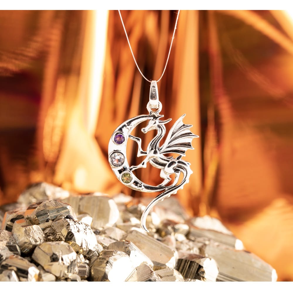 Ondersteund door drie aardenergieën: amethist voor spirituele verlichting, blauwe topaas voor wijsheid en integriteit, en peridot om het hartchakra te openen voor magische werelden.