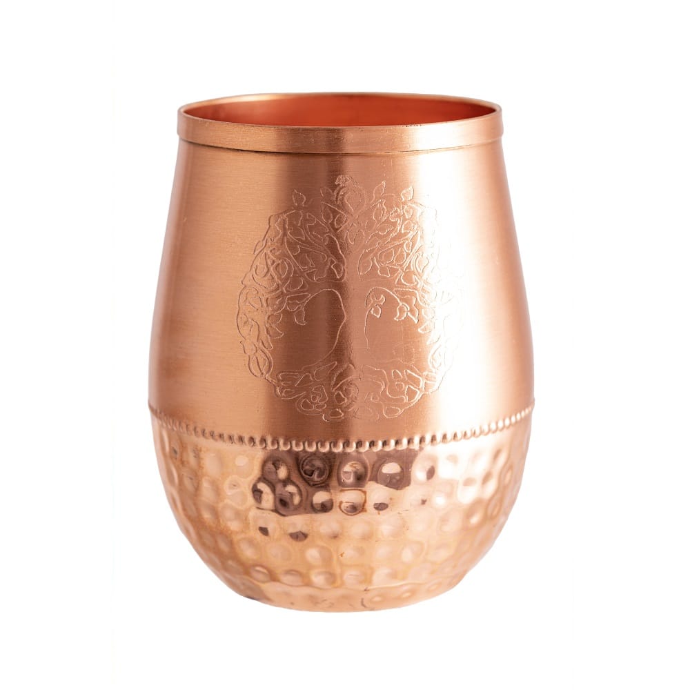 Door de koperen drinkbeker te combineren met het symbool van de levensboom worden de gezondheidsvoordelen van koper gecombineerd met de diepe symbolische betekenis van de levensboom.