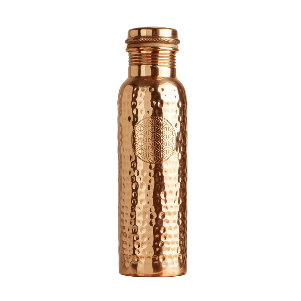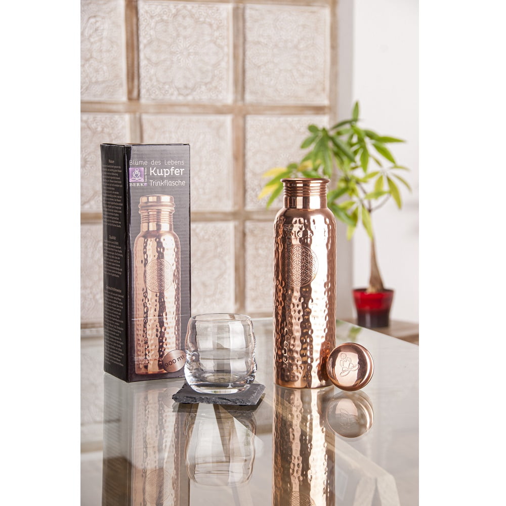 Het water uit deze koperen fles bevat de energie van de krachtige levensbloem en het harmoniserende koper.