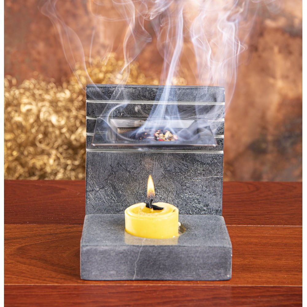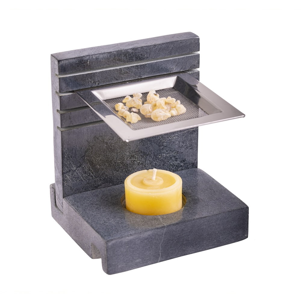 Door de opstijgende hitte van de kaars of theelichtje brandt de wierook zacht en langzaam op.