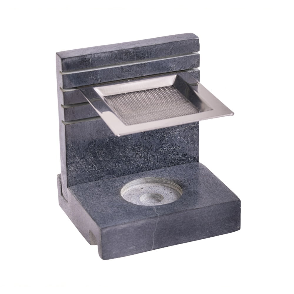 Verfijnde wierookbrander van speksteen met vierkante zeef.