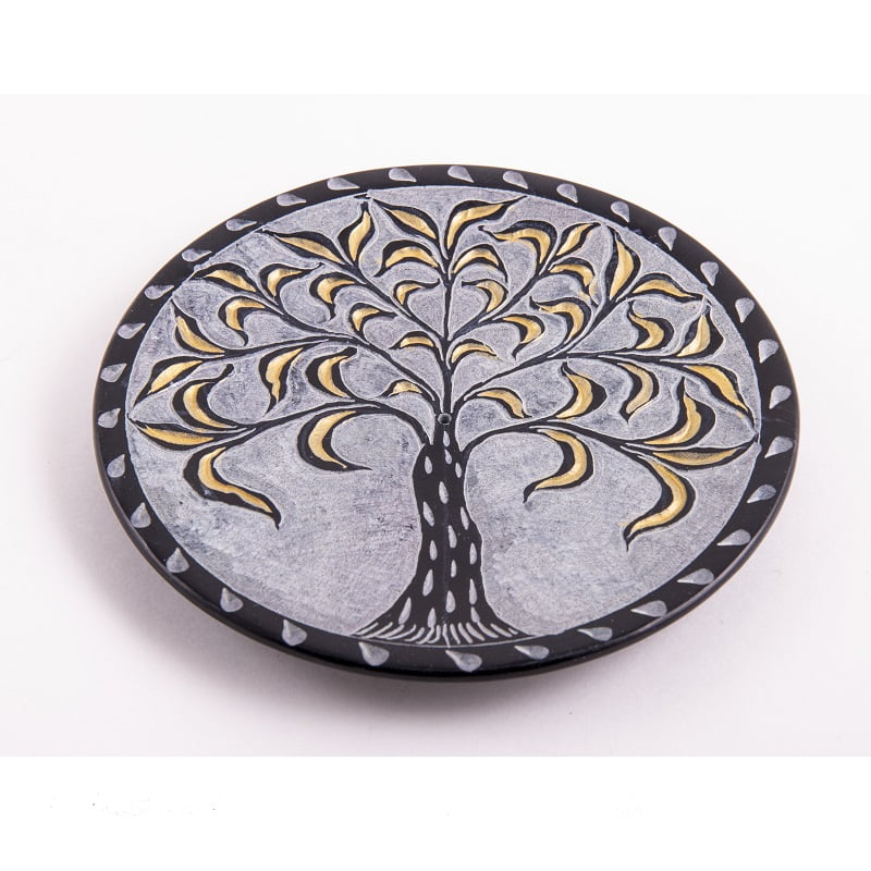 Home » Producten » Wierookhouder speksteen » Wierookhouder speksteen Levensboom zwart goud